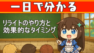 ブログ 一日で分かる:リライトのやり方と効果的なタイミング ブログ運営を続けていると、必ず「リライト」という作業が必要になります。 リライトとは、すでに公開している記事を修正・加筆して、内容をより良く整えることです。 新しい記事を増やすだけではなく、既存の記事を“武器のように鍛え直す”ことで、読者にとって分かりやすく役立つ情報を提供し続けられます。 その結果、検索で見つけてもらいやすくなったり、記事を最後まで読んでもらえる確率が上がったりと、ブログ全体の信頼性を高める効果があります。 また、単なる解説だけでは堅い文章になって読みにくいので、ここからはRPGのゲーム風にたとえつつ分かりやすく説明していきます。 2025.09.22 ブログ金融解説